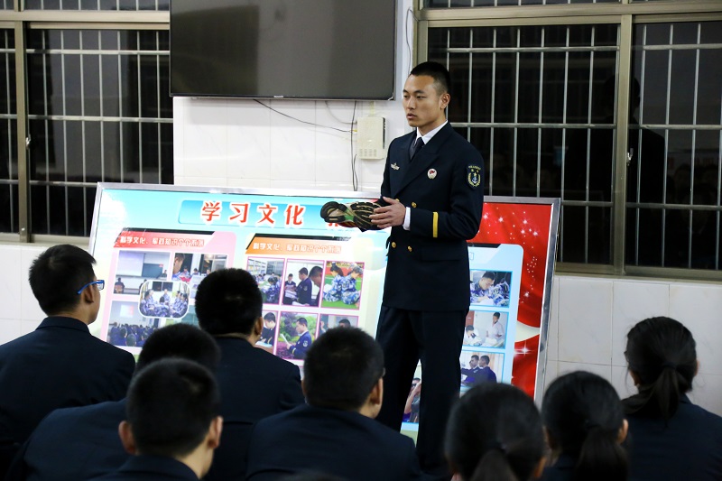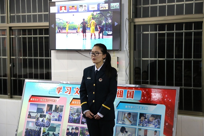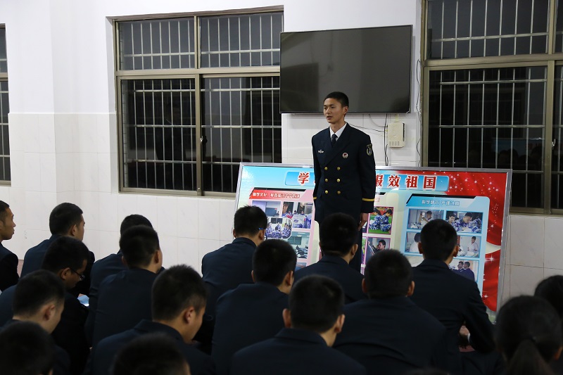 第三位是一中队的指导员曾鹏同志,他以即将毕业的国防生为主线,传递出珍惜时光,珍惜友谊,珍惜青春的主题,还提出了自己对未来深蓝军营的憧憬和对大家道一声珍重的不舍,激发了学员们的共鸣,掌声不断。