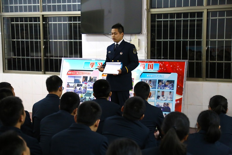 本次即兴演讲由马琦同志主持,前两名学员都是以体育活动为主题,岳晨晨同志以实物为参照,以通俗易懂的语言,分享了选鞋的注意事项和跑步经验,同时还提出了避免劳损运动伤的小细节小方法。第二名是李炎坤同志,他是大队的“足球之星”,技术精湛。李炎坤同志通过战术板描绘,生动形象地详细讲解了足球比赛常见的规则和足球技巧,使大家更加深入的了解足球这项有趣的体育运动,学员们也对下周的足球赛跃跃欲试。