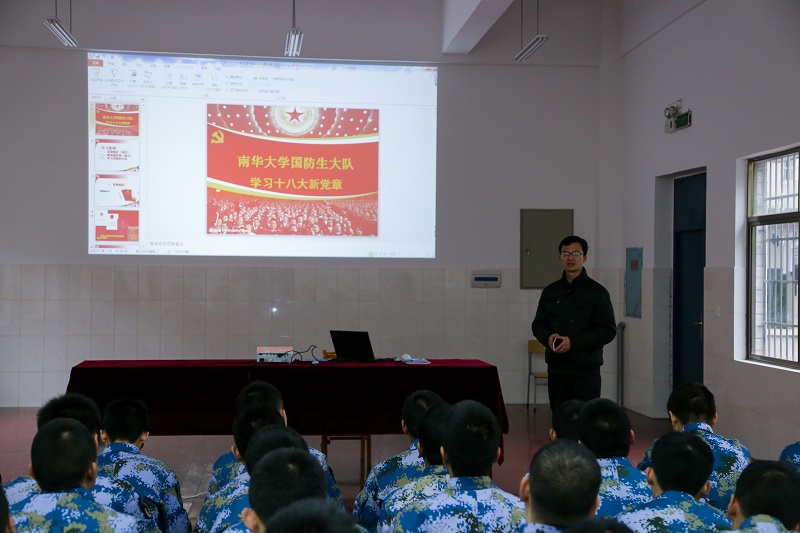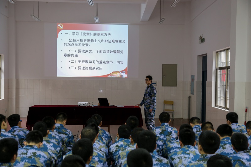 为深入学习贯彻习近平总书记系列重要讲话精神,强化国防生大队全体学员对党章的理解,1月11日下午,国防生大队在附一楼组织集体学习了党章,党务秘书曾鹏和党小组组长鲁一通以《学习党章》为题作了一场学习讲座。选培办姚征主任、冯勇老师、张际明教官出席此次学习活动。