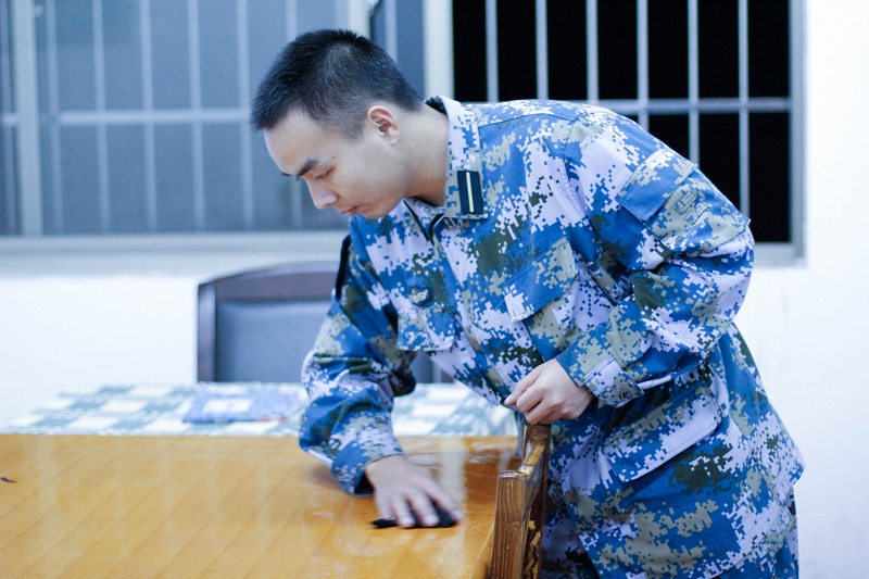 2016年1月11晚,在全体国防生学习过党章后,大队组织全体男生党员进行公共卫生区卫生大扫除。广大党员打扫卫生细致认真,通过打扫,公共卫生区(走廊、厕所、楼梯)的整洁度达到了一个新的层次。辛勤的汗水和刺鼻的消毒液也使大家深深的认识到整洁的来之不易,心中也更加珍视平时的生活环境。通过这类的劳动充分调动了党员同志的积极性,带头作用,责任意识和担当意识,也时刻提醒了广大学生党员不忘自己的党员身份,平时要敢吃苦,能吃苦,勇担当,处处要发挥先锋模范作用。