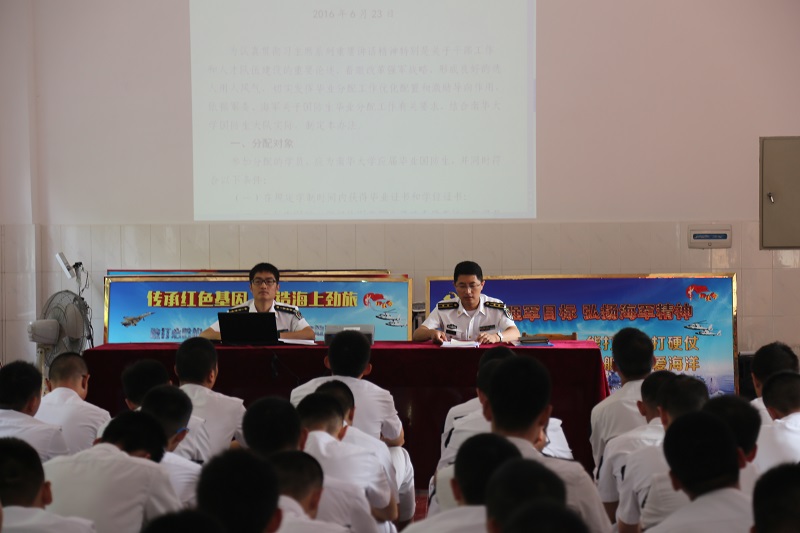 会上,张教官传达了海军《关于做好2016年国防生毕业分配工作的通知》和《南华大学海军国防生毕业分配实施办法》,选培办主任刘德忠对毕业分配工作通知的要点和大家关注的焦点进行了深入解读。